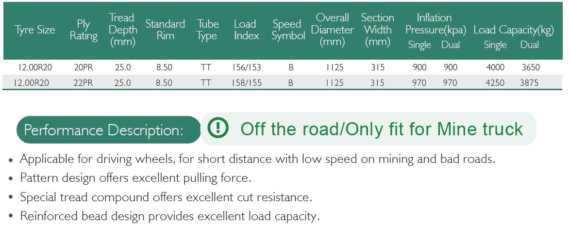 Suitable for short distance transportation, coal mine, iron ore and other bad roadsSizes AndSpecs